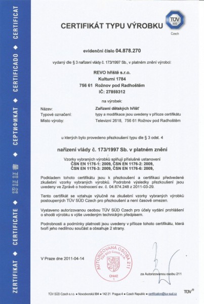 Hojdačky, šmýkalky, cvičné zostavy a ďalšie zariadenia, ktoré vyžadujú podľa STN EN 1176:2009 úpravu priestoru pádu materiálom tlmiacim pád a pádová výška je vetšia ako 1,0 m.
