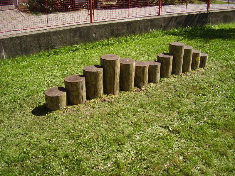 Popis zariadenia: Koly na prechádzanie sú vyrobené zo smrekovej stredovej guľatiny o 190 – 210 mm. Všetko je tlakovo impregnované Wolmanitom CX 10 a zbrúsené do hladka. Horné reťaze plochy sú ošetrené trojitým náterom Xyladecor Top Glazúra v odtieni orech. Spodná časť je opatrená asfaltovým izolačným lakom RENOLAK ALN.