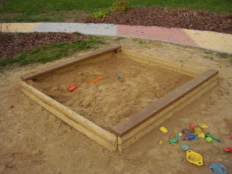 Pieskovisko z polovičných kôlov s 2 sedačkami, rozmery 2 m x 2 m výška 0,25 m