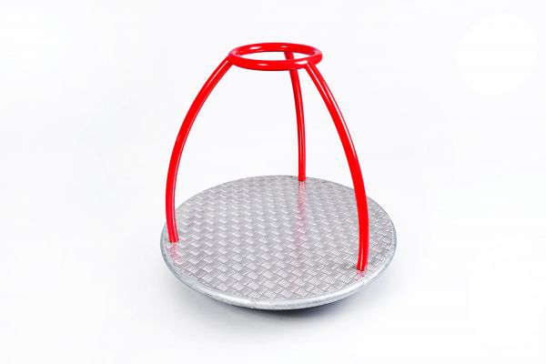 Popis zariadenia: Konštrukcia kolotoča je vyrobená z oceľových tenkostenných profilov kruhových, štvorcových a obdĺžnikových prierezov zváraných v ochrannej atmosfére metódou TIG. Súčasti, ktoré sú zabudované do zeme alebo sa nachádzajú v bezprostrednej blízkosti terénu (základový rám, konštrukcia plošiny), upravujeme žiarovým zinkovaním. Na ostatné kovové diely používame epoxidovú prášková farbu – komaxit. Povrch plošiny je vyrobený z hliníkového protišmykového plechu s prelisovanými výstupkami pre bezpečné použitie výrobku. Jednoduché a bezpečné otáčanie konštrukcie zaisťujú dve masívne kuželíkové ložiská bežne používané v priemysle. Sedáky vyrábame z makromolekulárneho polyetylénu HDPE s ochrannými prísadami proti pôsobeniu UV žiarenia. Materiál je nesavý, odolný voči plesniam, baktériám, poveternostným vplyvom a väčšine chemikálií.